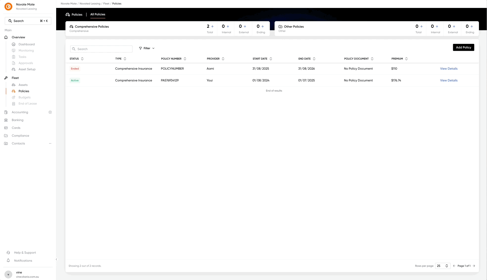 We've made it easier to manage insurance policies in Karia with clearer workflows and more control. You can now: