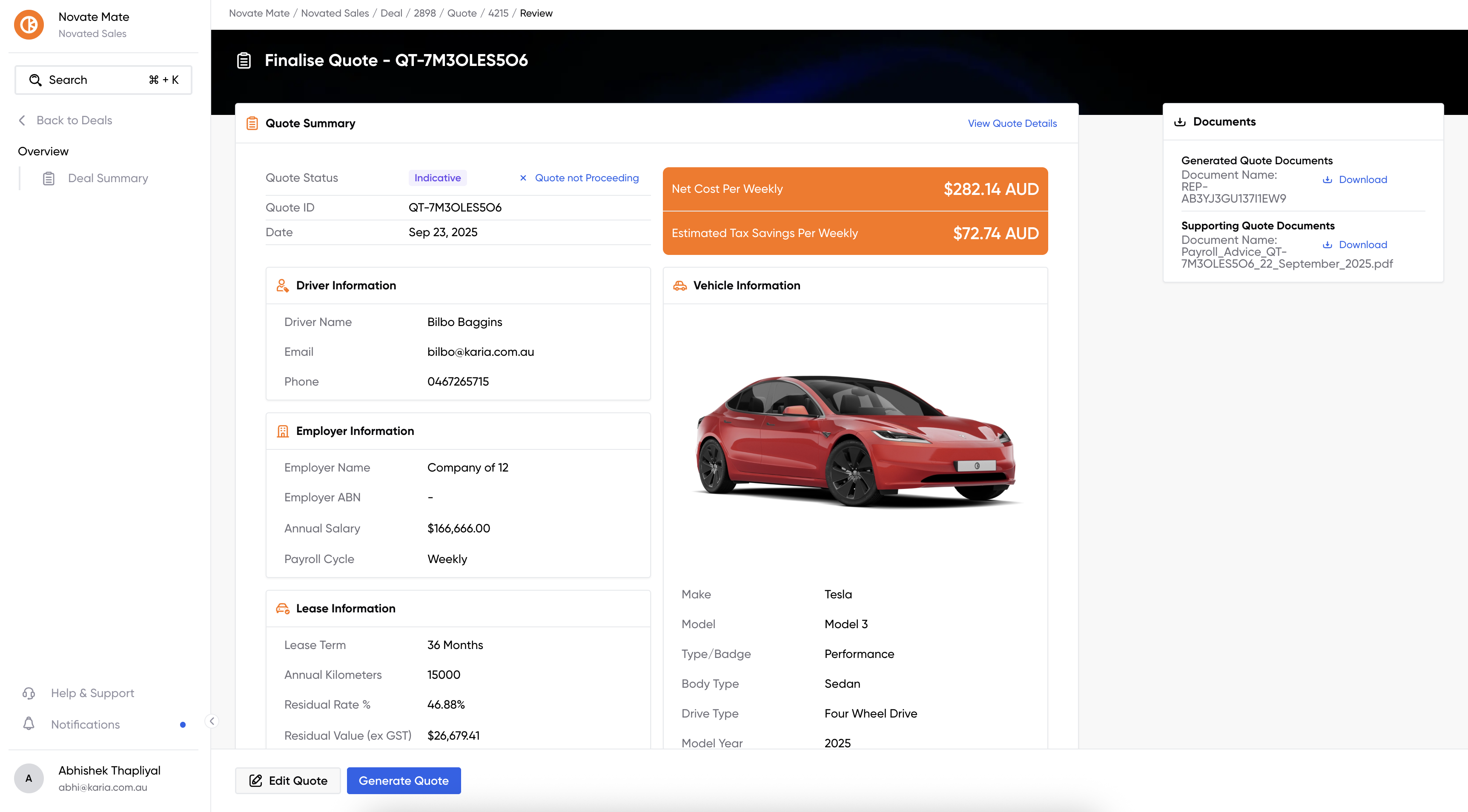 You can now generate payroll advice before a deal is finalised in the Sales tool. This gives employers early visibility of deductions and payments, helping them prepare in advance and avoid delays once the lease is live