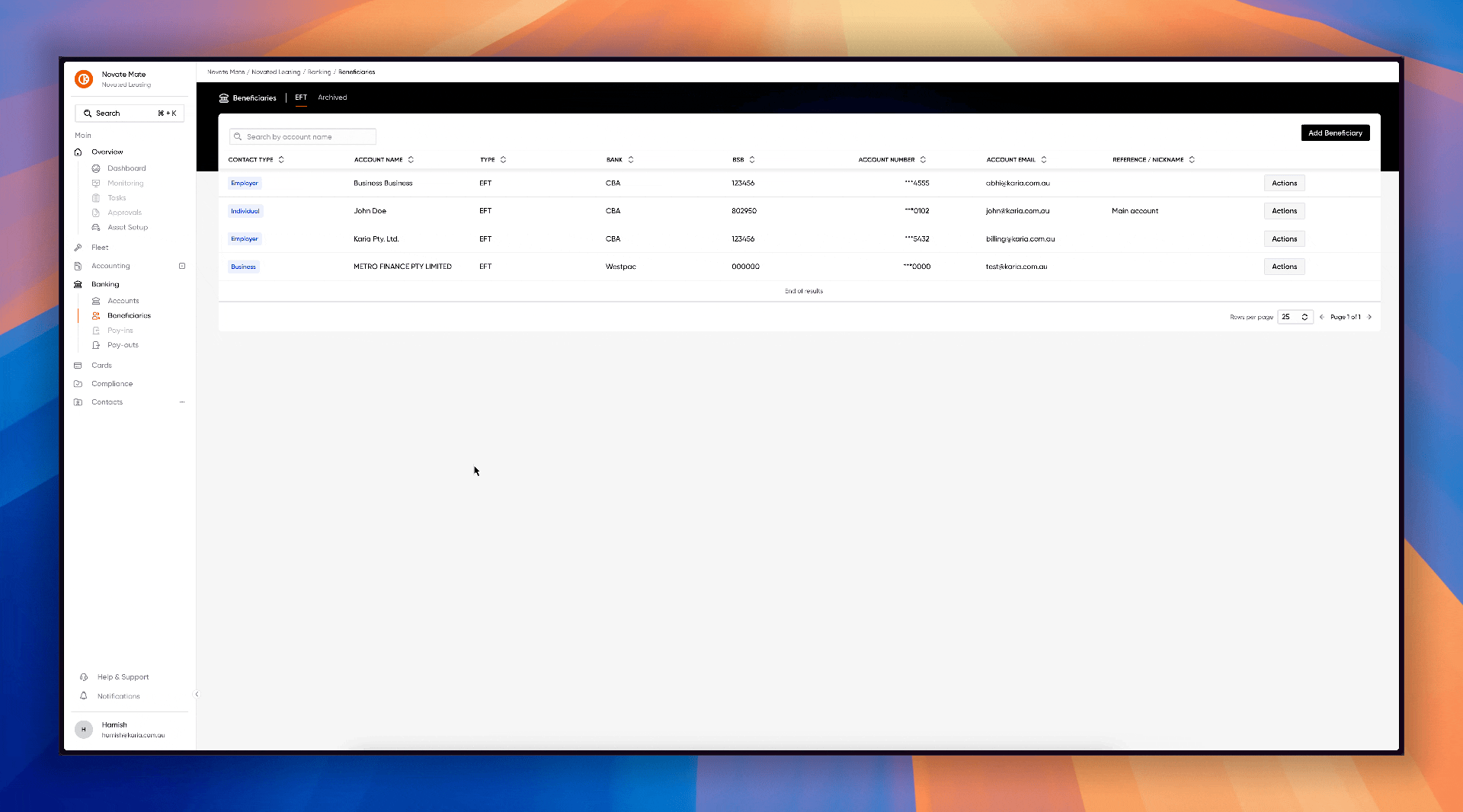 You can now keep your list of client bank details tidy by archiving beneficiaries you no longer need - inactive ones are automatically moved out of the main view, and any past transactions linked to archived beneficiaries will still retain their full history.