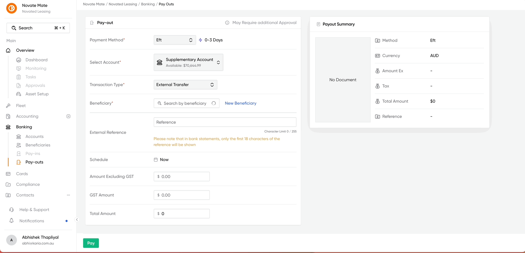Process BDX payouts from a chosen bank account to maintain clear, segregated ledgers for better financial tracking.