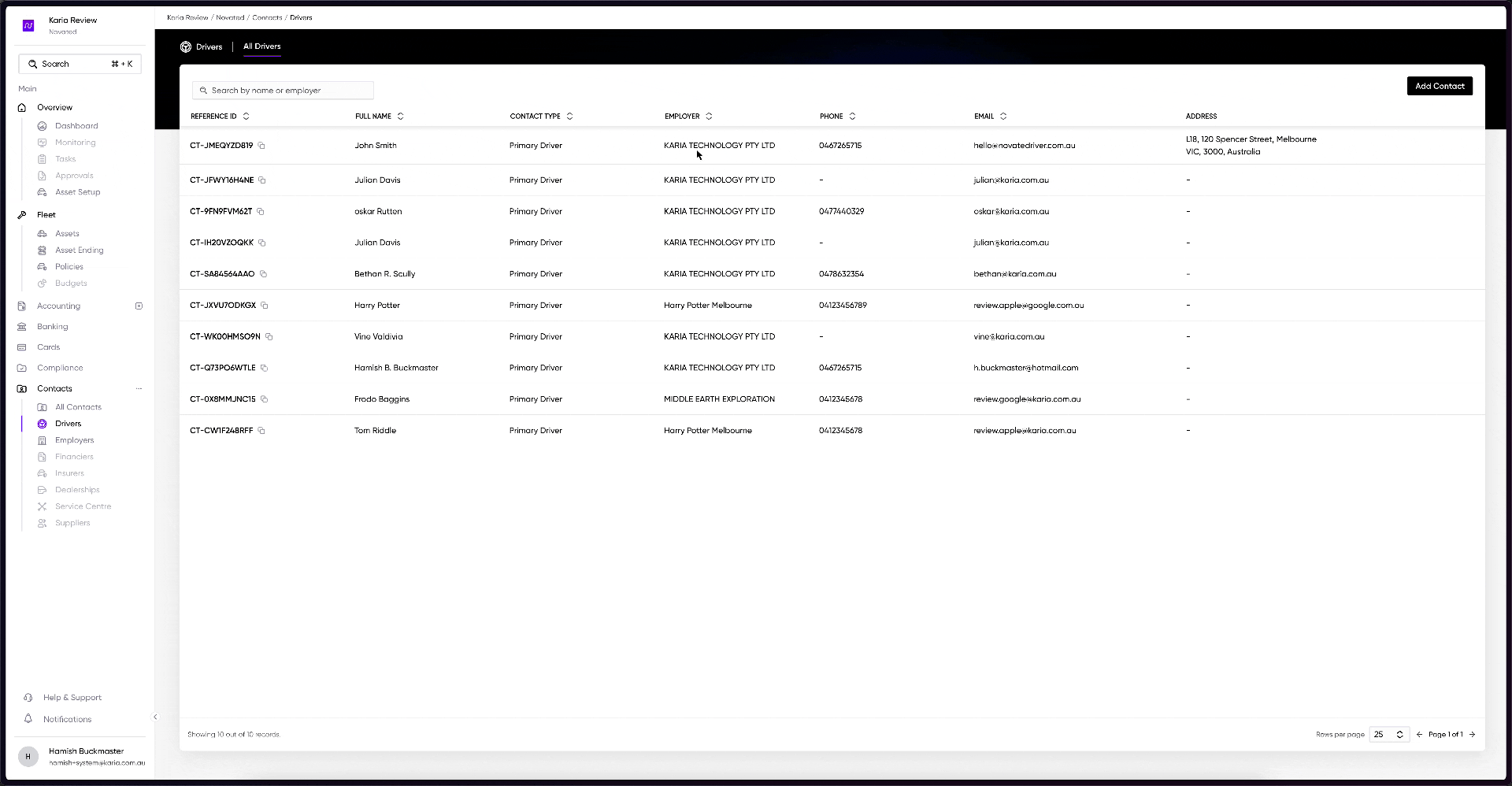 Once you have the novated driver integration enabled, it's as simple as going to the drivers menu item and opening the side-sheet and clicking invite. This will send the driver a 8 digit code for them to use to link the account.