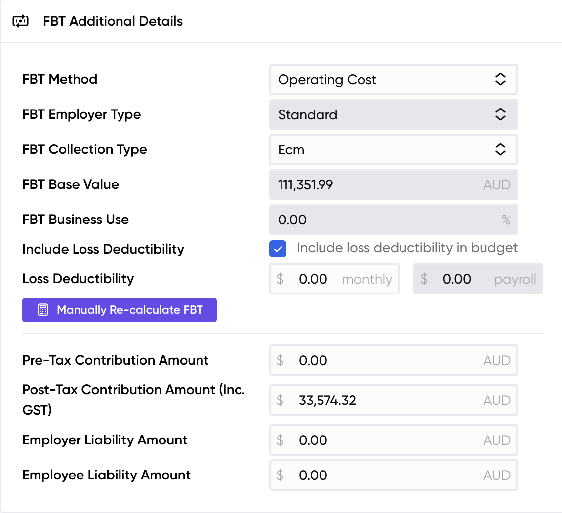 Loss Deductability, also known as LCA or LVA, was hidden from the Asset Migration flow and in Novated Management. Now, you may view these figures when you are setting up an asset in novated and when you create a new budget.