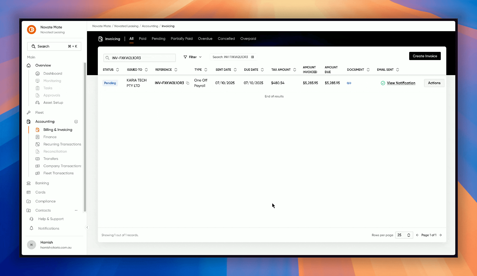 We wanted to give everyone better visibility on the delivery status of the invoices that were either manually raised or automatically sent out each day. You can hover over the notification badge which then will show how many times an email was sent out for that invoice and who was sent that email. Additionally, you can get live updates by simply clicking the refresh button next to the status.