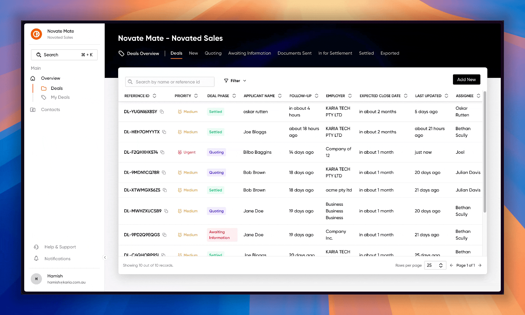 This week we shipped improvements across Sales and Novated to make quoting, policy and asset workflows clearer. Highlights include showing Loss Deductability when creating assets and budgets, reassigning deals (including priority, expected close and follow‑up dates), a notification popup that shows invoice delivery history, contact‑type badges on contact sheets, and the ability to view policies per individual asset.